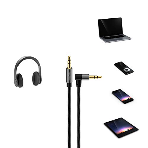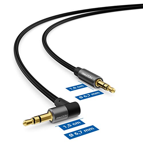 Specification: deleyCON 1,5m 3,5mm Audio Jack Kabel Stereokabel Nylon Kabel en Metalen Stekkers – Rechte Stekker naar 90° Haakse…