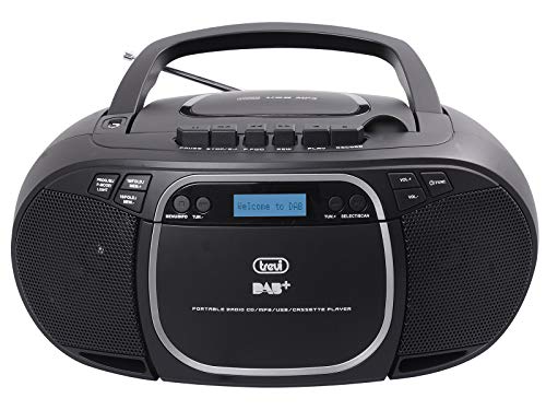 De draagbare Dab Trevi CMP 576 Dab radio is ideaal om overal je favoriete muziek te horen. Dankzij de radio-Dab naast de klassieke analoge radiofrequenties kun je met de draagbare stereo-installatie van Trevi ook alle zenders horen die met digitaal signaal met de hoogste precisie en tuner overdragen, en slaat tot 30 zenders in Dab en 30 in Fm voor een eenvoudige en snelle toegang tot je favorieten. Licht en eenvoudig te transporteren, CMP 576 Dab beschikt over een comfortabel “Dot Matrix” display voor optimaal zicht en hoge leesbaarheid. Uitgerust met cd-speler, USB- en AUX-ingangen voor het aansluiten van compatibele apparaten en flashgeheugen, evenals cassettevak waarmee je je oude cassettes weer kunt afspelen en afspelen.