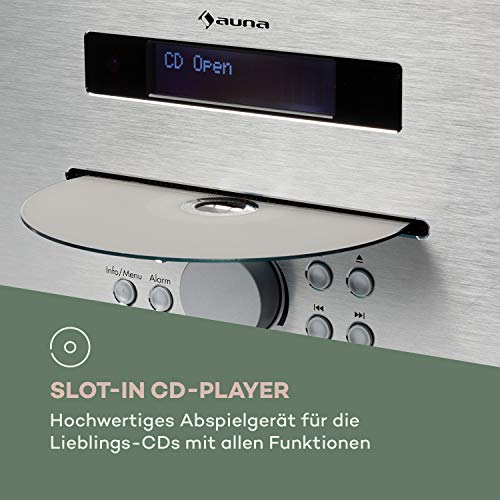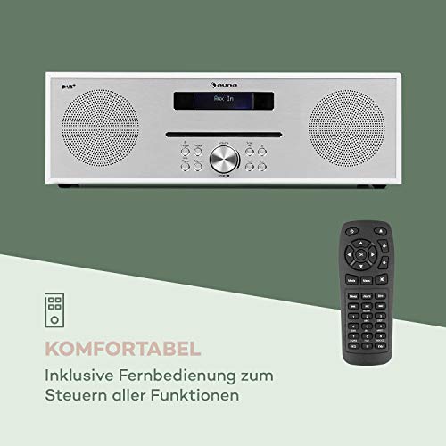 auna Silver Star CD-DAB CD-speler met DAB + en FM-radio – slot-in CD-speler, CD-radio, Bluetooth, 2 x 20 watt max. , USB, AUX-IN, hoofdtelefoonuitgang, aluminium, incl. Afstandsbediening, wit