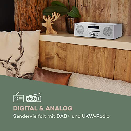 HOGE KWALITEIT: Het elegante SolidSteel-ontwerp met een frontpaneel van geborsteld aluminium en een witte behuizing is een subtiele blikvanger in elke woonomgeving. De auna DAB-radio overtuigt niet alleen met zijn technische details.
