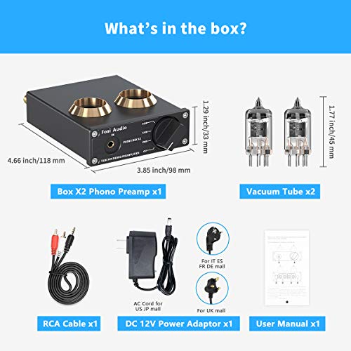 Wat krijgt u: BOX X2 phono voorversterker x1, vacuüm buizen x2, RCA kabel x1, voedingsadapter x1, gebruikershandleiding x1, 18-maanden wereldwijde garantie, en 24-uurs snelle klantenservice.