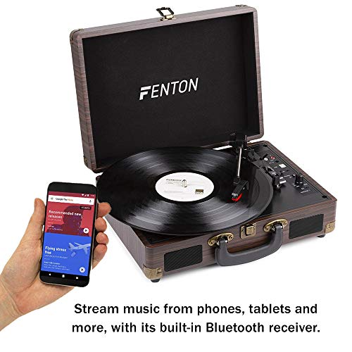 Fenton RP115 Retro Platenspeler in Houten Koffer met Ingebouwde Speakers, Bluetooth en USB – Hout