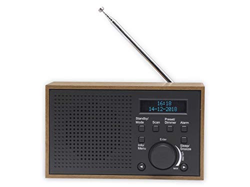 Specification: DAB+ en FM-radio, DAB-46, donkergrijs, klok en wekker, werkt met batterij en stroom, 2 W audio-uitgang, houten afwerking…