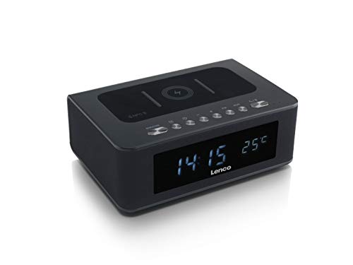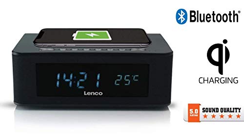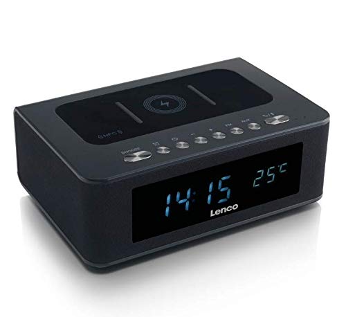 Specification: Lenco CR-580 horloge-radio, radiowekker met bluetooth, QI draadloos laadstation, NFC, USB en temperatuurweergave, zwart